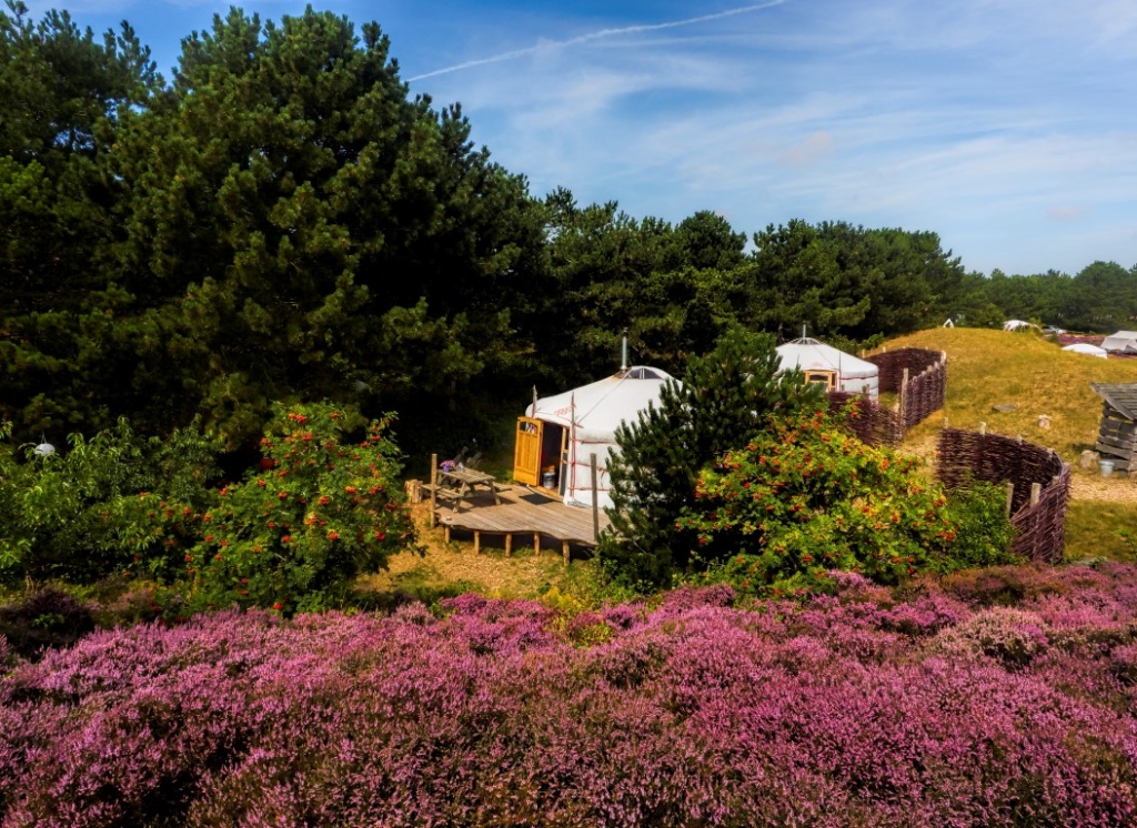 Hidden deep in the dunes of the Dunes of Texel National Park and yet also on a campsite with good facilities are three authentic yurts.