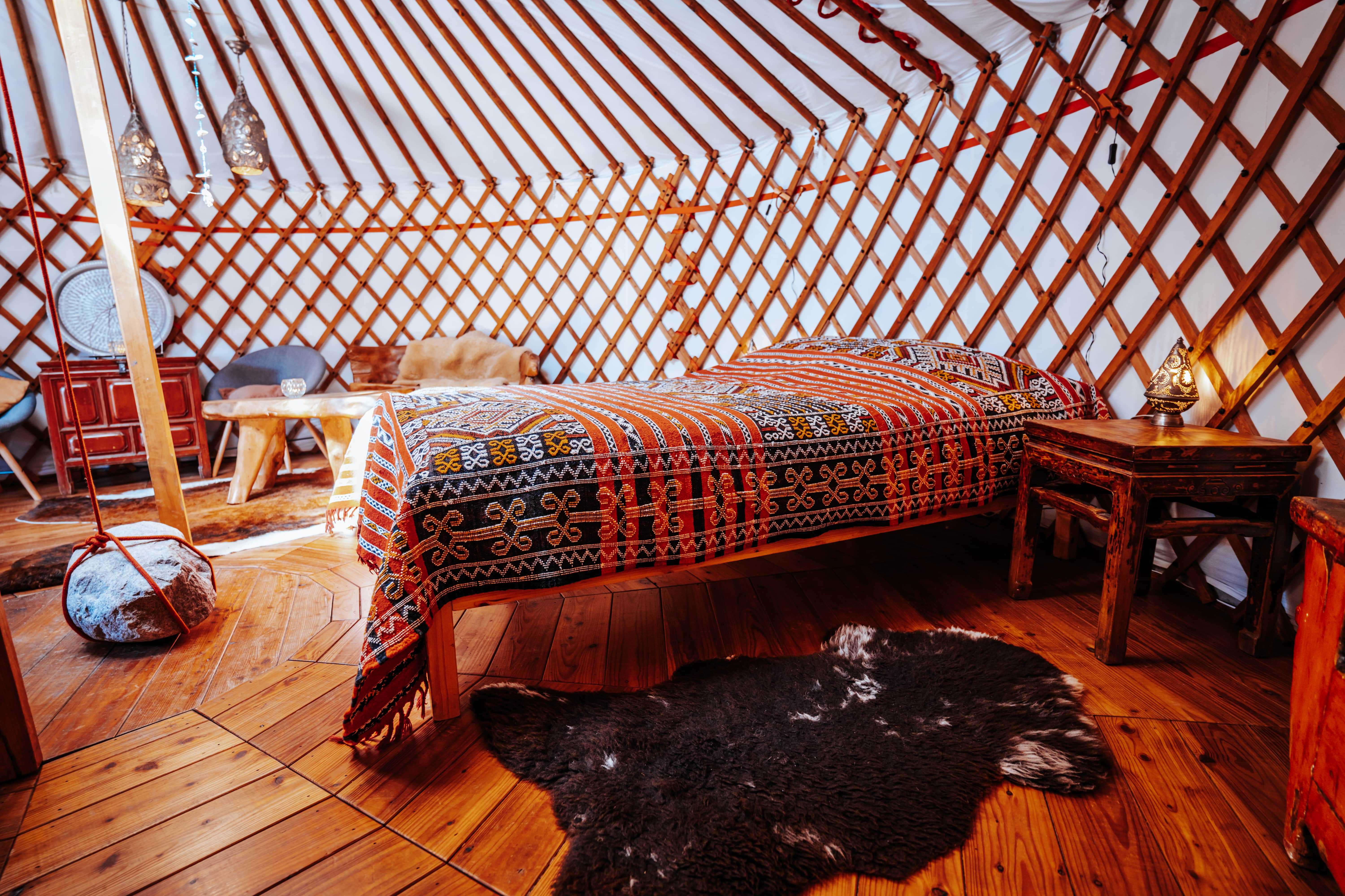 Our “hideaway” yurts stand together in a beautiful dune hollow on the edge of the pine forest. Romantically furnished and, naturally, with a double bed.